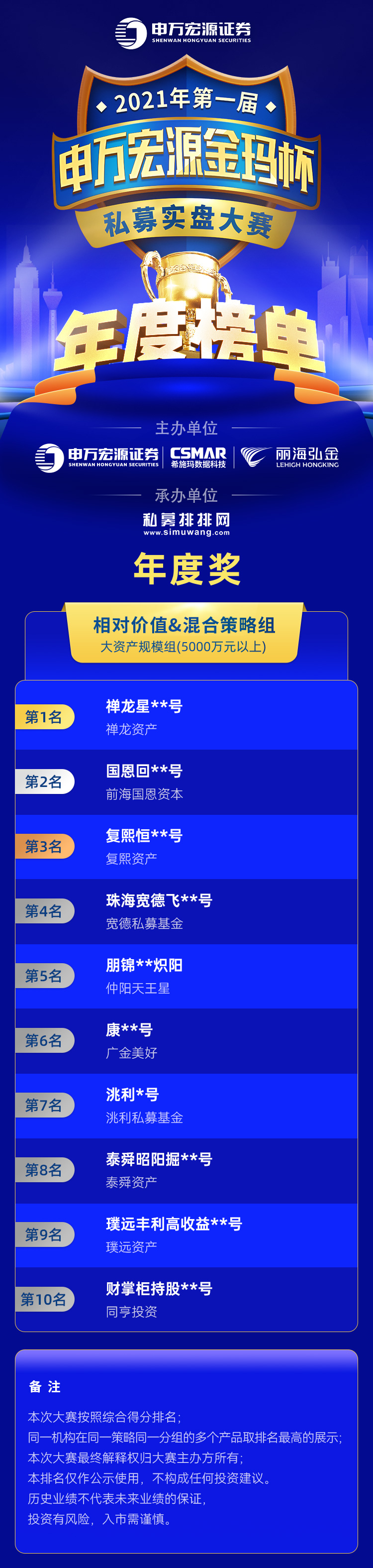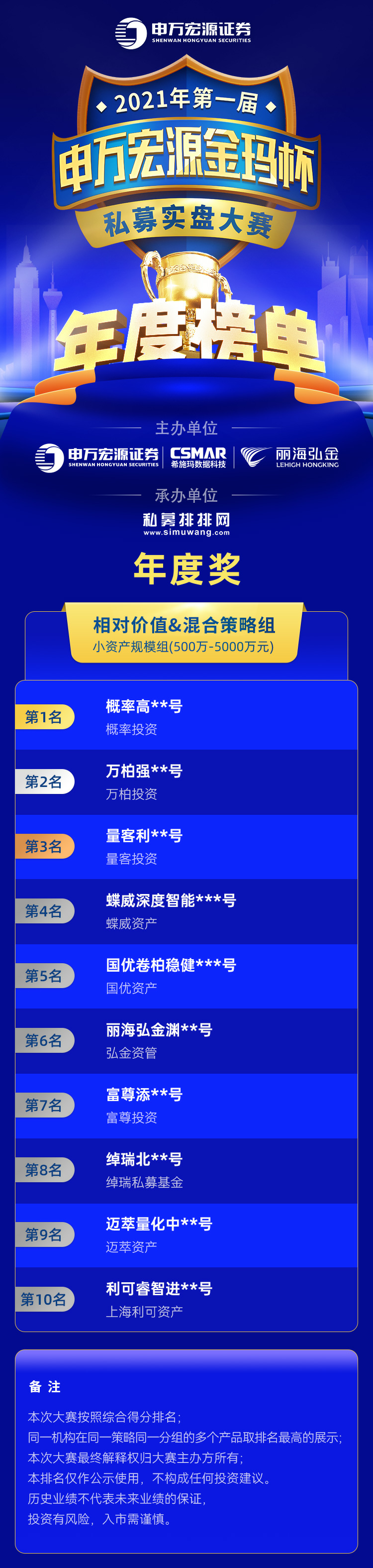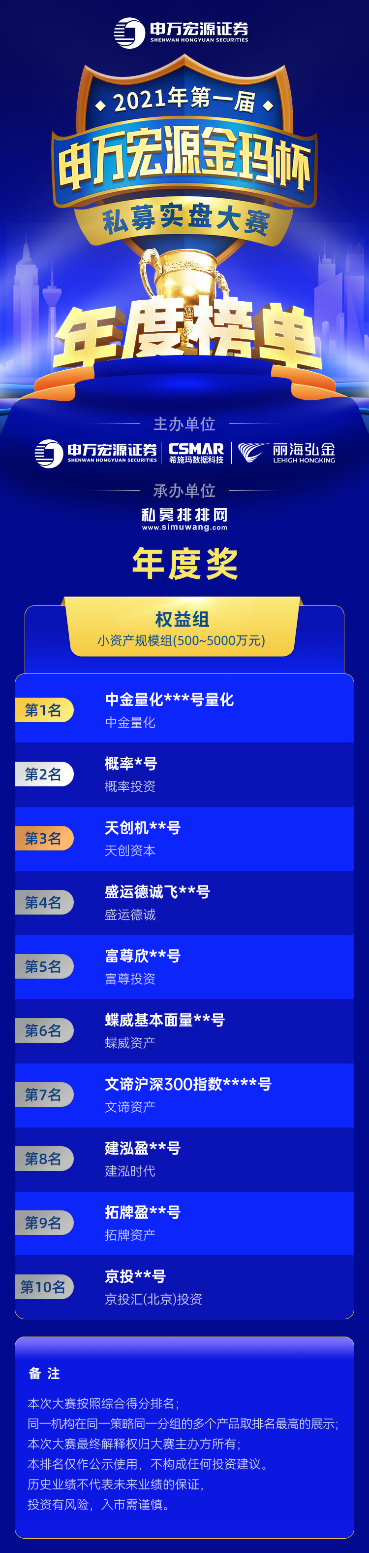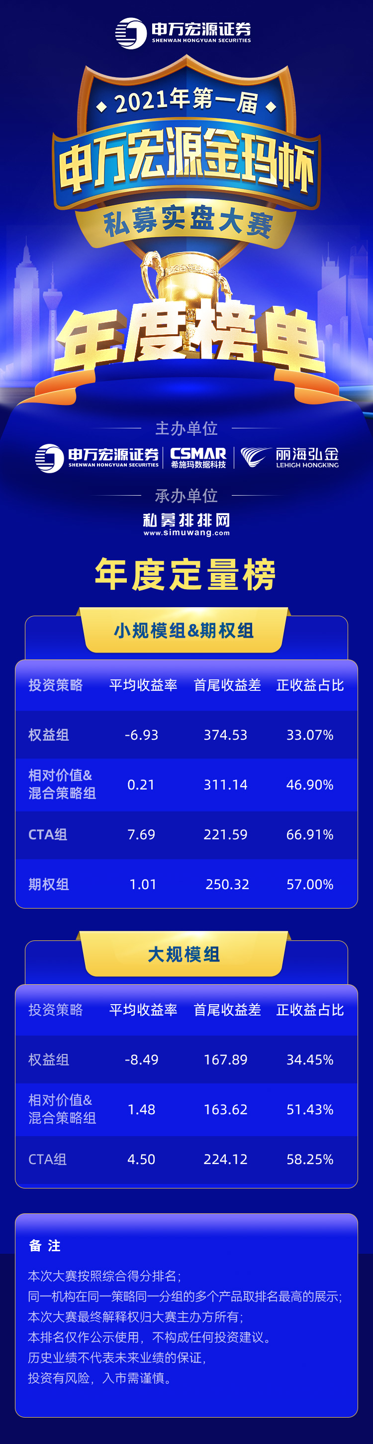 ´óÈü¾ÙÐÐʱ¼äΪ2021Äê6ÔÂ1ÈÕ-2022Äê5ÔÂ31ÈÕ£¬£¬£¬£¬£¬£¬£¬ÎªÆÚÒ»Äê¡£¡£¡£¡£¡£¡£¡£¡£±¾´Î´óÈüµÄ²ÎÈü²úƷƾ֤սÂÔ»®·ÖÎªÈ¨Òæ×é¡¢Ïà¶Ô¼ÛÖµ&»ìÏýÕ½ÂÔ×é¡¢CTA×éºÍÆÚȨ×飬£¬£¬£¬£¬£¬£¬²¢Æ¾Ö¤²ÎÈü²úÆ·µÄ×ʲú¹æÄ£ÊÇ·ñÁè¼Ý5000Íò½«È¨Òæ×éºÍÏà¶Ô¼ÛÖµ&»ìÏýÕ½ÂÔ×é½øÒ»²½Ï¸·ÖΪ´ó×ʲú¹æÄ£×é(5000ÍòÔªÒÔÉÏ)ºÍС×ʲú¹æÄ£×é(500Íò-5000ÍòÔª)£¬£¬£¬£¬£¬£¬£¬Æ¾Ö¤²ÎÈü²úÆ·¹æÄ£ÊÇ·ñÁè¼Ý2000Íò½«CTA×é·ÖΪ´ó×ʲú¹æÄ£×é(2000ÍòÔªÒÔÉÏ)£¬£¬£¬£¬£¬£¬£¬ºÍС×ʲú¹æÄ£×é(500Íò-2000ÍòÔª)£¬£¬£¬£¬£¬£¬£¬ÆÚȨÀà²ÎÈüÕß²»·Ö×é¡£¡£¡£¡£¡£¡£¡£¡£Õû¸ö´óÈüÒ»¹²7¸ö×é±ð¡£¡£¡£¡£¡£¡£¡£¡£