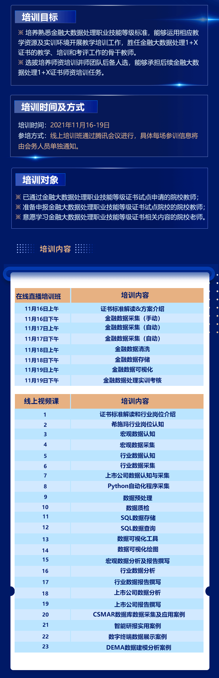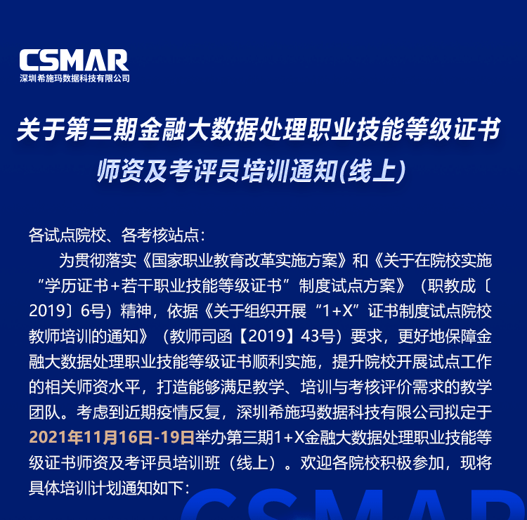 【线上】关于第三期金融大数据处置惩罚职业手艺品级证书师资及考评员培训通知