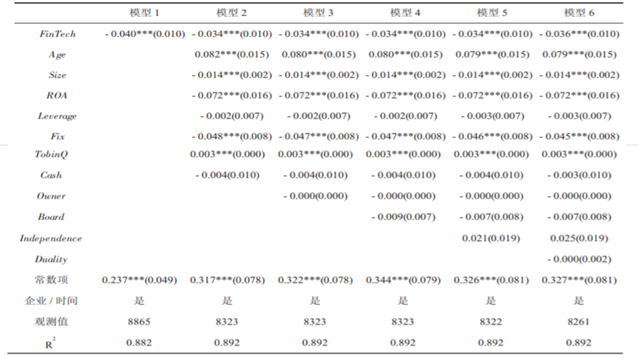 ÔÚÖ÷»Ø¹éÆÊÎöÖУ¬£¬£¬£¬£¬£¬£¬£¬ÎÄÕÂÄ¥Á·ÁËǰÎÄËùÌáµÄ¼ÙÉè¡£¡£¡£¡£¡£¡£¡£¡£Ê×ÏÈͨ¹ý»ù×¼»Ø¹éÄ¥Á·H1£¬£¬£¬£¬£¬£¬£¬£¬»Ø¹éЧ¹ûÈçϱíËùʾ¡£¡£¡£¡£¡£¡£¡£¡£¿£¿£¿£¿£¿£¿£¿É¼û½ðÈڿƼ¼ £¨FinTech£© µÄϵÊýÏÔÖøÎª¸ºÖµ¡£¡£¡£¡£¡£¡£¡£¡£Õâ˵Ã÷½ðÈڿƼ¼ÏÔÖøïÔÌÁËÆóÒµ¡°ÍÑʵÏòÐ顱£¬£¬£¬£¬£¬£¬£¬£¬ÑéÖ¤ÁËÑо¿¼ÙÉè H1¡£¡£¡£¡£¡£¡£¡£¡£