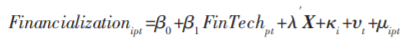 iΪ¸öÌå¼´ÆóÒµ£¬£¬£¬£¬£¬£¬£¬£¬p ΪÆóÒµËù´¦µØÇø¼´Ê¡·Ý£¬£¬£¬£¬£¬£¬£¬£¬t Ϊʱ¼ä¼´Äê·Ý¡£¡£¡£¡£¡£¡£¡£¡£Financialization ΪÆóÒµ¡°ÍÑʵÏòÐ顱±äÁ¿£¬£¬£¬£¬£¬£¬£¬£¬ÓÃÆóÒµ½ðÈÚ»¯À´È¨ºâ¡£¡£¡£¡£¡£¡£¡£¡£FinTechΪ½ðÈڿƼ¼±äÁ¿£¬£¬£¬£¬£¬£¬£¬£¬X ΪÆóÒµ²ãÃæµÄ¿ØÖƱäÁ¿ÁÐÏòÁ¿¡£¡£¡£¡£¡£¡£¡£¡£