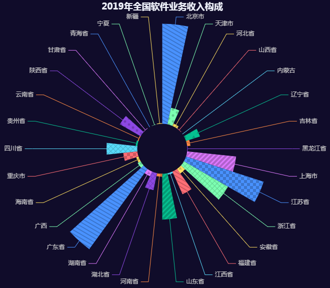 图1展示了2019年天下软件营业收入各地区占比情形,,,,,,,,从图中可以看出,,,,,,,,北京、广东、江苏软件营业收入天下占比排名前三,,,,,,,,其次是浙江、山东、上海。。。。。。我国软件和信息手艺服务工业规模迅速扩大,,,,,,,,手艺水平显著提升,,,,,,,,已生长成为战略新兴工业及数字工业化的主要组成部分。。。。。。