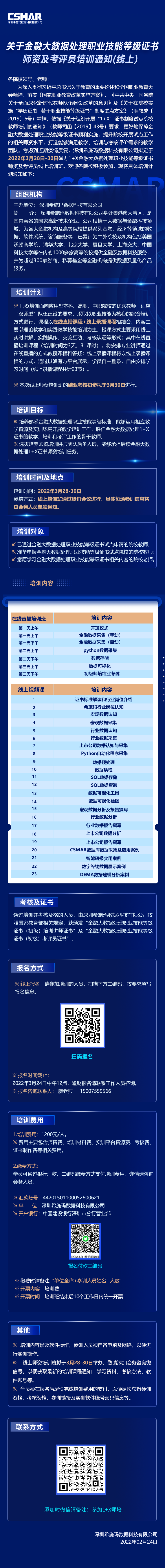 师资培训 | 关于金融大数据处置惩罚职业手艺品级证书师资及考评员培训通知(线上)
