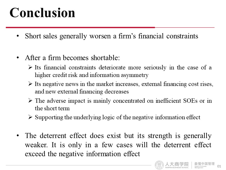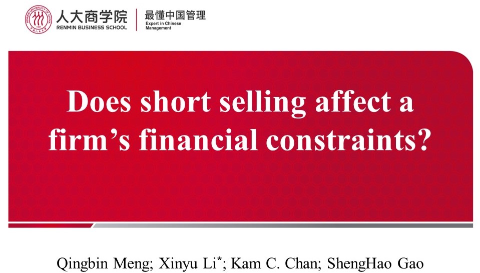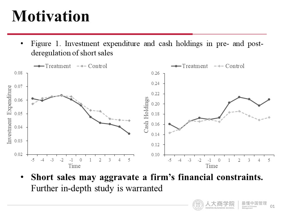 在讲座分享交流历程中,,,,,孟教授主要从论文问题选题、研究设计结构、实证剖析历程等方面睁开,,,,,团结经济配景详细地解说了卖空、融资约束以及融资不可得的看法,,,,,通过企业可卖空前后投资支出和现金持有的数据比照可以看出卖空可能会加剧公司的融资约束。。。。。。。
